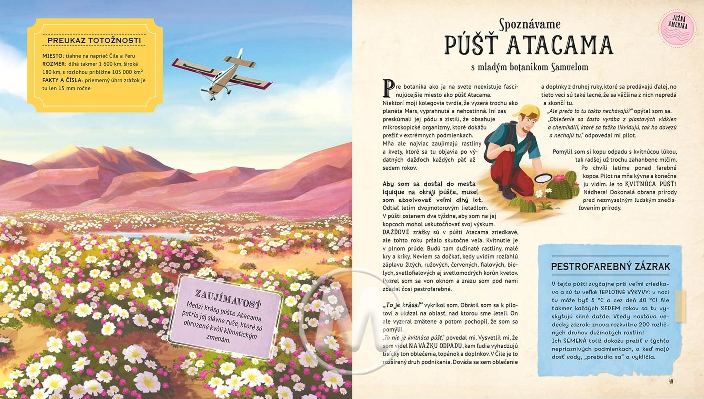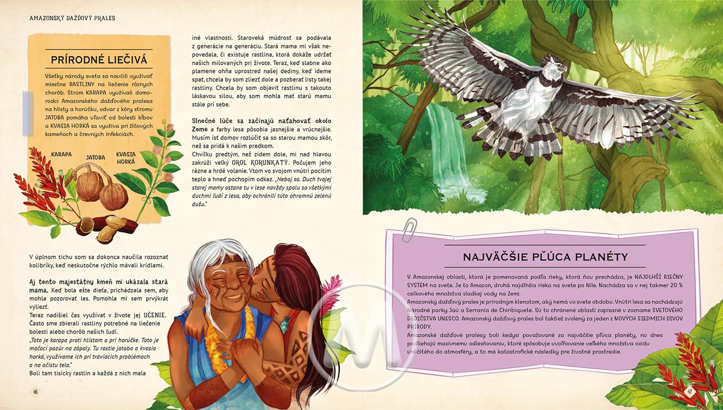 Fantastická cesta, na ktorej spoznáš viac ako 20 divov prírody. Tieto nesmierne krásne miesta opisujú tí, ktorí ich preskúmali alebo na nich istý čas žili. Od amazonského dažďového pralesa cez Veľký kaňon, Veľkú koralovú bariéru, Himaláje, Viktóriine vodopády až po púšť Atacama. Dozvieš sa veľa zaujímavostí, získaš QR KÓD, vďaka ktorému si môžeš stiahnuť a vyfarbiť 4 mandaly, a učenie bude hrou.