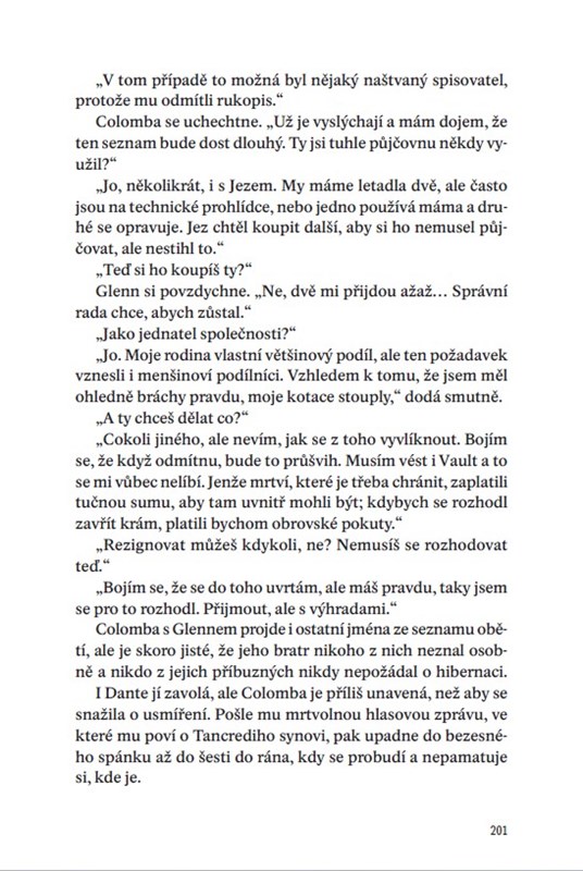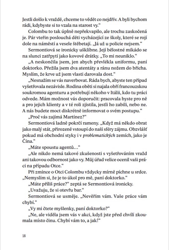 Dante a Colomba jsou při vyšetřování vystaveni těžkým zkouškám, při nichž čelí i otázce, jaký je jejich skutečný vztah. Podmanivá dvojice se vrací v dalším neúprosném thrilleru z pera Sandroneho Dazieriho.