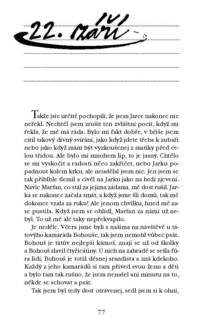 Desetiletý Tomáš má strach. Dějí se kolem něho podivné věci, a on neřekl nikomu ani slovo. A protože si už neví rady, začne si tajně psát deník. Jemu prozradí, co se stalo o prázdninách a proč prožívá tak neuvěřitelné září. Když se v létě na táboře s kamarádkou ukryli v pšeničném poli, byli svědky neobyčejné události. Během několika dní Tomáš pochopil, že kruh v obilí a bledé bytosti souvisejí jen s ním. Byl vybrán! Co bude dál? Tomáš má čím dál větší strach...