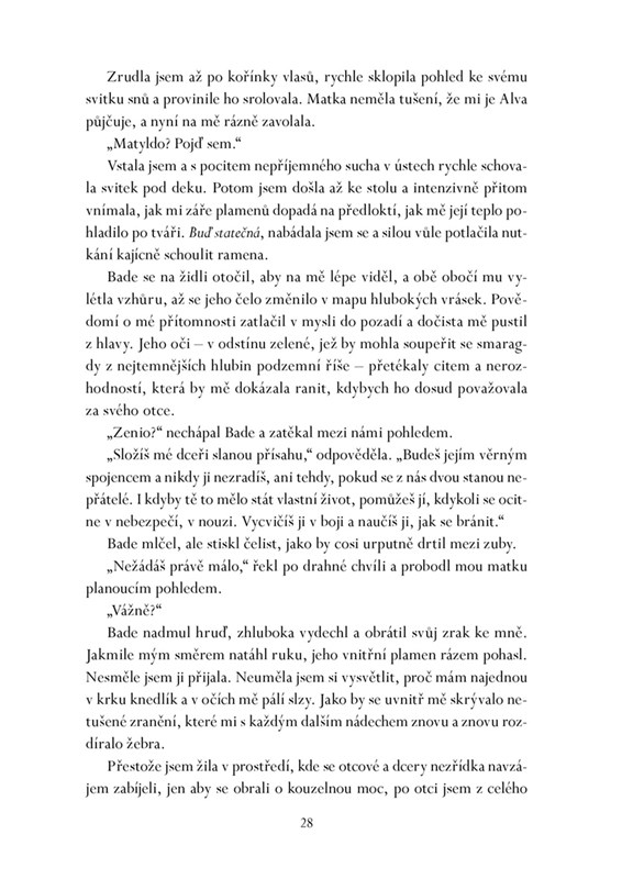 Matylda se narodila v říši mocných a nelítostných bohů. Sama je obdařena jen skromnou magií poselství, avšak jako nositelce slov a dopisů jsou jí známa tajemství, která nesmí odhalit ani svým nejbližším. Kdysi se na ni v nejtemnější noci svého života obrátil i smrtelník Vincent, jeho prosba však zůstala nevyslyšena... až do chvíle, kdy má Matylda doručit dopis právě jemu. Jejich setkání oživí stará pouta a možná změní i zákony světa. Probudí v sobě vzájemnou lásku, nebo je osud znovu rozdělí?