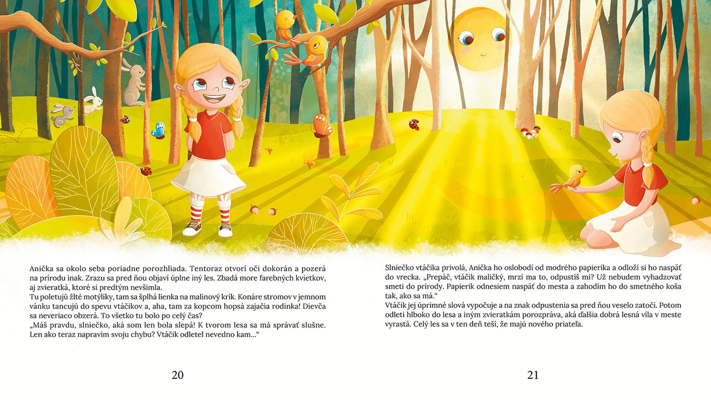 Ak máš rád zábavu, prírodu a ľudí, prečítaj si túto knihu. Stretneš v nej tri veselé deti, ktoré sa skamarátili so Slniečkom, a dozvieš sa, aké dobrodružstvá s ním zažili. Ocitneš sa vo svete fantázie a kníh, naučíš sa, ako sa správať v lese, ako chrániť prírodu a ako byť dobrým kamarátom. To všetko zažiješ vďaka Slniečku, ktoré sa na teba v tejto knihe teší.