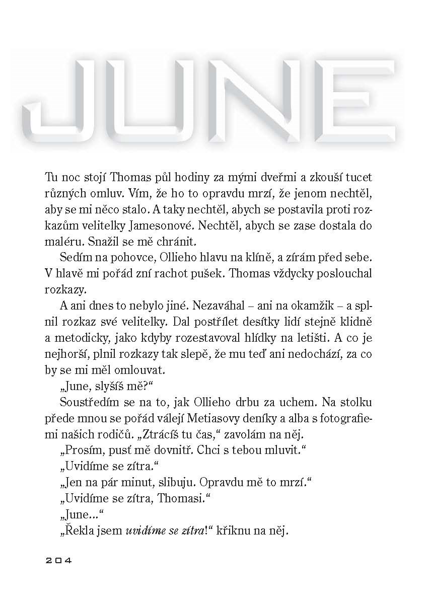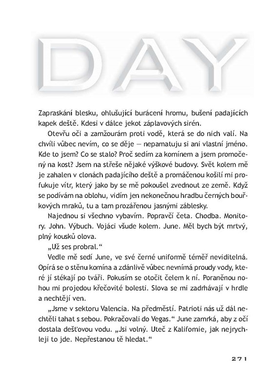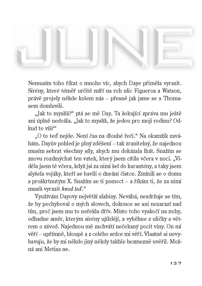 Oba pocházejí z naprosto odlišných světů a zdá se, že neexistuje důvod, proč by se jejich cesty někdy měly zkřížit. Ovšem pouze do doby, než je zavražděn Metias, bratr Juny, a než se Day stává hlavním podezřelým. Rozpoutává se hra na kočku a myš, v níž se Day snaží ochránit svou rodinu a June pomstít smrt bratra. Ale při šokujícím zvratu událostí oba odhalí, co je ve skutečnosti postavilo proti sobě. Nyní nastává boj o holý život, boj o budoucnost lidstva, boj o skutečnou lidskou svobodu.