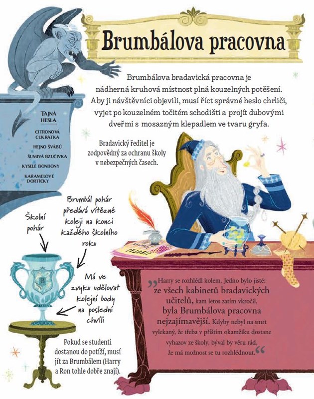 Proč je Brumbál tak báječný ředitel? Co má na kartičce k čokoládové žabce? Kterému famfrpálovému družstvu fandí? To vše a ještě mnohem více se o profesoru Brumbálovi dozvíte z téhle knížky! Potterovské průvodce jsou sběratelské příručky, které nutně potřebuje každý milovník série o čarodějnickém učni. Připravte se na moudrá slova, velkolepé čarování a taky na lahodná citronová cukrátka...